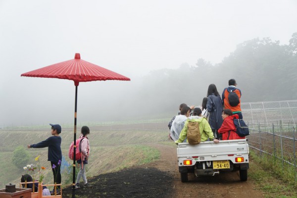 参加者の皆さんは、農場内を送迎する軽トラに分乗してお別れ。